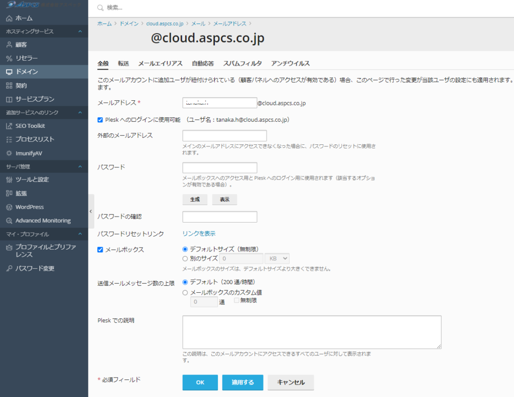 | Pleskへのログインに使用可能 | 有効にした場合、パスワード変更の為管理コンソールへログインできます。 |