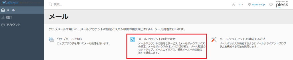 2.管理画面で、”メールアカウント設定を変更”をクリックします。